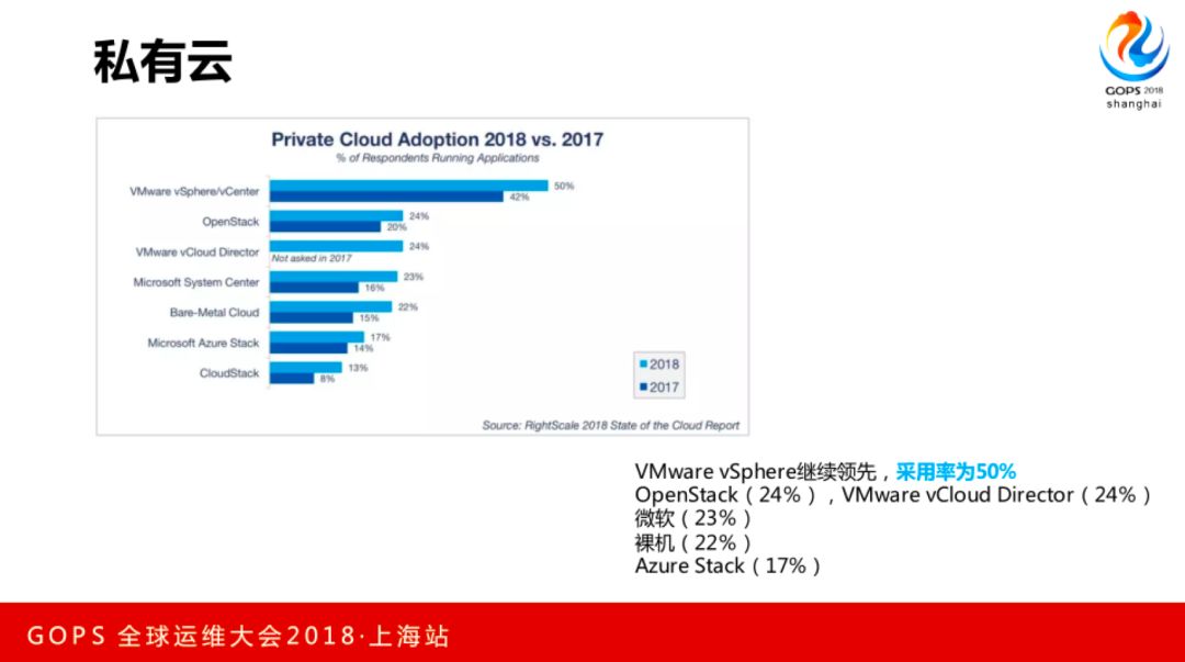 这里也有私有云的数据,其实私有云里OpenStack国内用的比较多,但是国内外使用的多的还是VMware,昨天有一篇文章叫OpenStack的八年之痒,是非常yip有深度的文章,推荐大家看看。