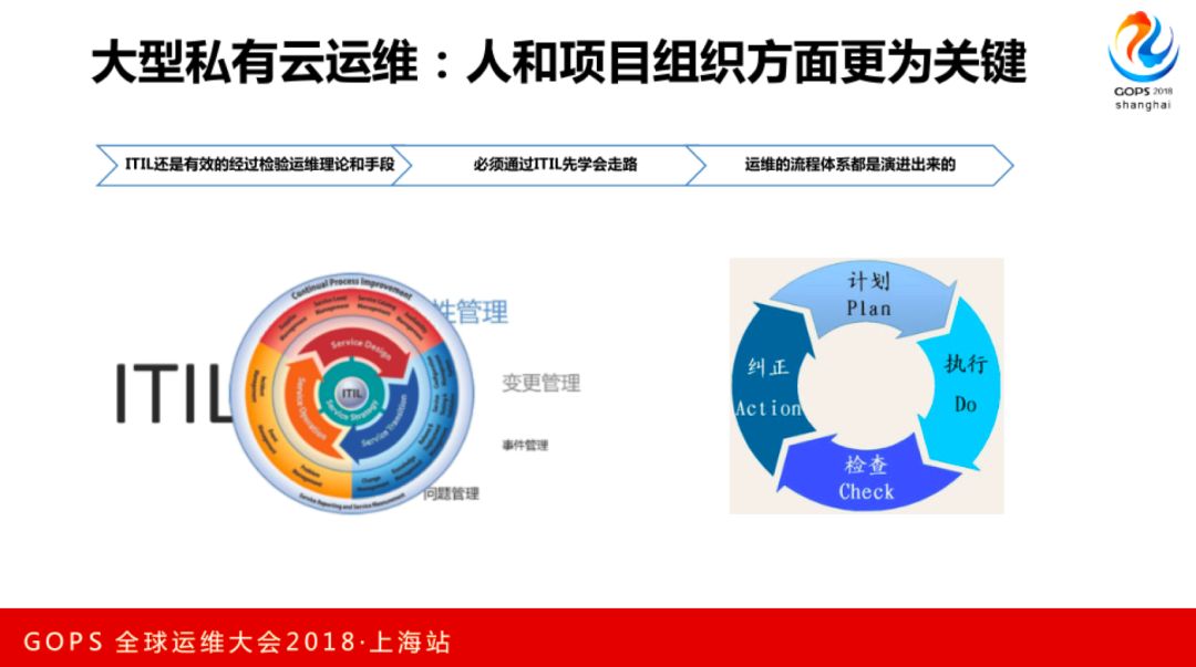在规模比较大的私有云里,还是比较讲究用传统的解决方案,像PDCA、ITIL。大型企业里ITIL是深入到IT内部的,必须要用ITIL语言进行沟通。
