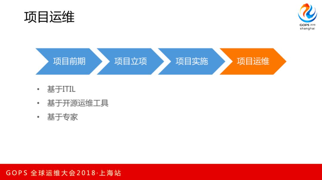 然后进入项目运维阶段。首先够是ITIL方面的流程,我们使用了大量的开源工具。