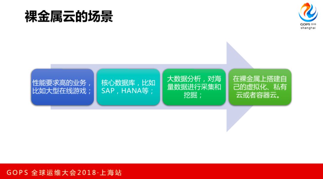哪些场景可以用裸金属?一是性能要求比较高的,比如说大型在线游戏、基因测序,这种对计算要求比较高的业务,还有一些传统行业,想核心数据库,SAP HANA这些。