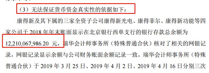 5月8日,康得新又刷屏了,因为它回复了深交的关注函,其中提到,网银余额122亿,结果银行回函0!