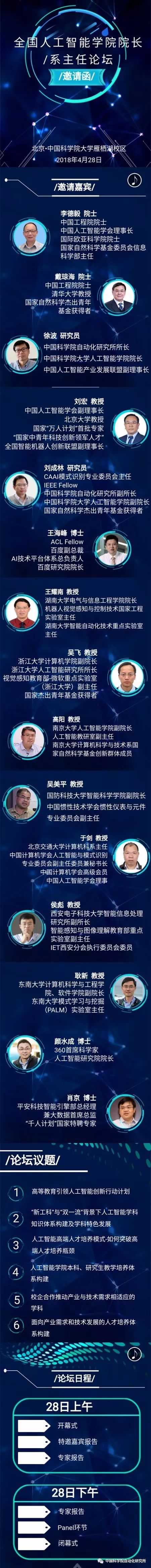 2018年4月28日,“全国人工智能学院院长/系主任论坛”将在中国科学院大学怀柔校区举行。此次论坛由中国人工智能学会、中国科学院大学主办,人工智能技术学院承办,将就人工智能的学科建设与发展、人才培养体系建设与产业人才需求匹配等方面进行深入探讨和前瞻式分析展望。自动化所徐波所长、刘成林副所长将作为特邀嘉宾出席本次论坛。