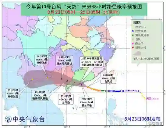 官方介绍:天鸽是今年第13号台风,中心今天(8月23日)早晨5点钟位于广东省珠海市东偏南方向大约200公里的南海北部海面上,中心附近最大风力超过13级(40米/秒),七级风圈半径220-280公里,十级风圈半径60-80公里,十二级风圈半径40公里。