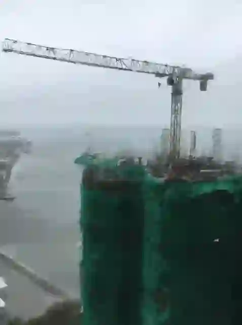 至于台风正面冲击的珠海,那就更没甚好说的:把塔吊直接干下去——这就是台风风暴眼的威力:
