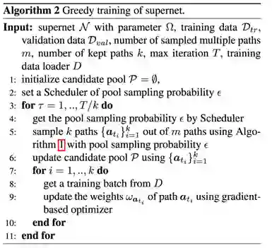 在本篇论文中,我们提出一种贪心超网络来减轻supernet的评估压力,使得supernet更加贪心地注重于有潜力的好结构,而不是全体。具体而言,在supernet训练过程中,我们提出了一种多路径拒绝式采样方法(multi-path sampling with rejection)来进行路径滤波 (path filtering),使得有潜力的好结构得到训练。通过这种方法,supernet的训练从整个搜索空间贪心地缩小到了有潜力的结构组成的空间中,因此训练的效率得到了提升。同时,为了进一步增大有潜力结构的采样概率与提高训练效率,我们基于exploration and exploitation准则,使用一个经验池存储评估过的“好”结构,用来加强贪心度并为后续的搜索提供好的初始点。本论文搜索出的结构在ImageNet(mobile setting) 下取得了SOTA(state-of-the-art) 的结果。