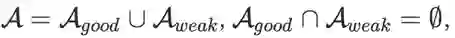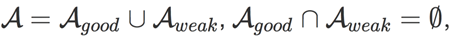 针对上述问题,一个直接的想法就是基于贪心策略,在训练过程中只训练好的结构。但很显然,我们并不知道一个随机初始化的搜索空间中哪些结构是好的。假设对于一个supernet,我们考虑其搜索空间A的一个完备划分,即: