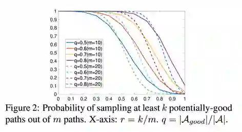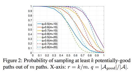 我们取m = 10和m = 20,对定理1的概率进行绘制,如Figure 2所示,可见这种采样下得到来自好空间中的path的概率是很高的。