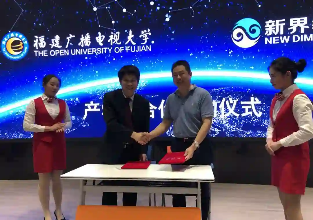 会议期间,福建广播电视大学、上海诺基亚贝尔股份有限公司、北京新界教育公司三方在福建广播电视大学建立5G室联网联合实验室的揭牌仪式。相关领导参加了签字和揭牌。