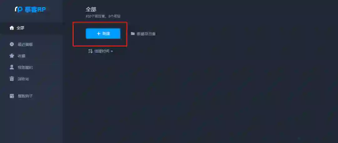 登录后进入摹客RP工作台,点击新建项目,选择所需尺寸,进入产品体验。