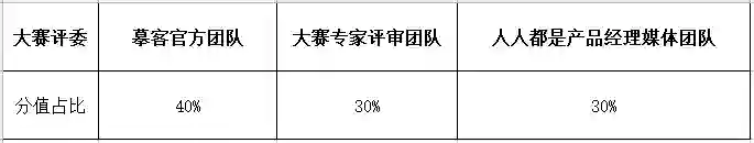 复评:将由摹客官方团队、大赛专家评审团队、人人都是产品经理媒体团队三方分别进行,最后由主办方核算所有参赛作品的综合得分。