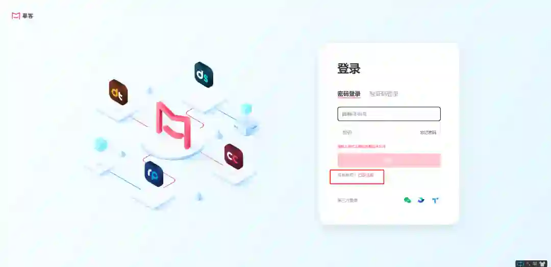 打开摹客官网,跳转注册:https://996.pm/7dqvQ,创建属于自己的账户![ 若已经是摹客用户,可直接登录 ]