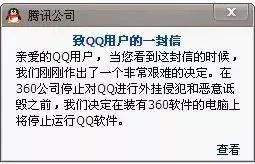 2010 年 11 月 3 日傍晚 6 点,QQ 用户收到了一个右下角弹窗通知:“我们刚刚作出了一个非常艰难的决定”。