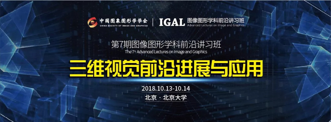 CSIG图像图形学科前沿讲习班(简称IGAL)于2018年10月13日-14日在北京举办第7期,本期讲习班主题为“三维视觉前沿进展与应用”,由北京大学的陈宝权教授担任学术主任,邀请三维视觉领域的知名专家作报告,使学员在了解学科热点、提高学术水平的同时,增加与三维视觉领域顶尖学者之间的学术交流。