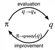 尽管蒙特卡罗方法和动态规划方法存在诸多不同,但是蒙特卡罗方法借鉴了很多动态规划中的思想。在动态规划中我们首先进行策略估计,计算特定策略π对应的Vπ和Qπ,然后进行策略改进,最终形成策略迭代。这些想法同样在蒙特卡罗方法中应用。
