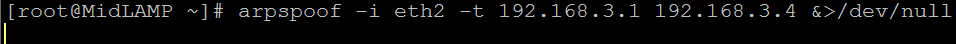 # arpspoof -i eth2 -t 192.168.3.1 192.168.3.4 &>/dev/null