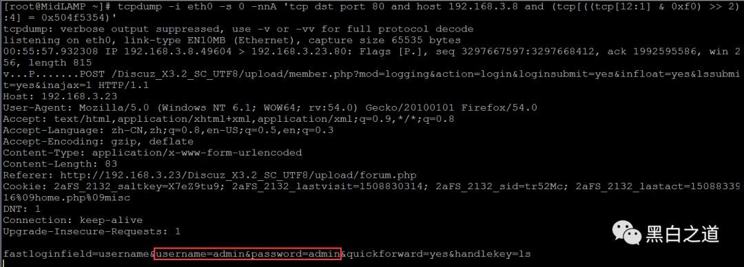 # tcpdump -i eth2 -s 0 -nnA 'tcp dst port 80 and host 192.168.3.8 and (tcp[((tcp[12:1] & 0xf0) >> 2):4] = 0x504f5354)'