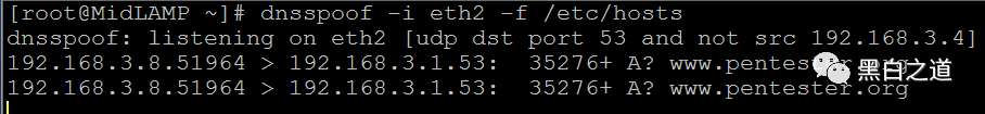 # dnsspoof -i eth2 -f /etc/hosts