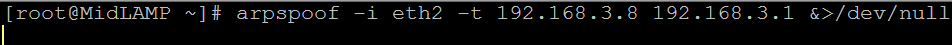 # arpspoof -i eth2 -t 192.168.3.8 192.168.3.1 &>/dev/null