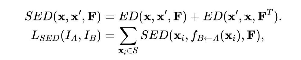 我们观察到 SfM(Structure-from-Motion)能够将不同光照情况下的真实图像注册到一起并计算出对应的相机位姿,为此本文进一步提出在 SfM 数据集上使用对称极限距离损失(Symmetric Epipolar Distance Loss)训练,该损失只依赖于 SfM 提供的相机位姿,但是又使得光照变化的真实图像能用来训练网络。