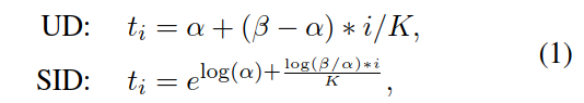 ti∈{t0,t1,...,tk}表示离散化阈值。本文中给α 和β都加了一个偏移值ξ来得到α∗和β∗,α∗=α +ξ =1.0,在[α∗, β∗]区间应用SID。