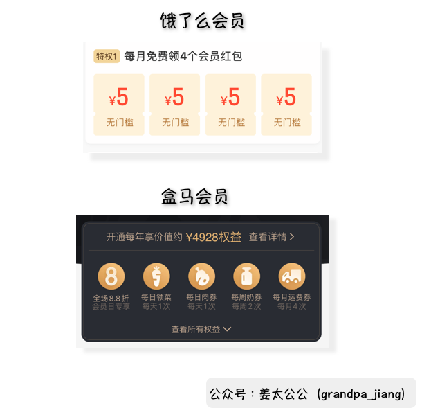 比如当你看到饿了么会员,你心里就会叨叨叨地算数:“啊,5元优惠券乘以4张,一共可以抵20元,我每月吃90顿外卖,一定可以用的完。”