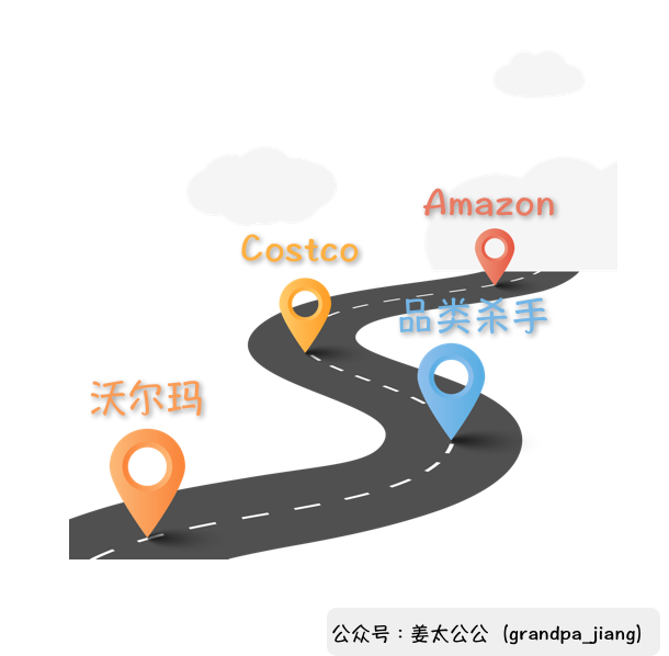 在这种情况下,专卖店(围绕品类)、Costco(围绕美国中产人群)、亚马逊(围绕线上接触)分别围绕不同的原点重新定位,重新组织价值链,从而获得低价。”