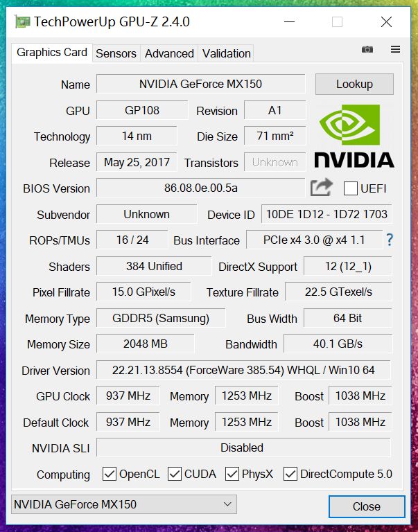 显卡方面,小米笔记本 Air 13.3 增强版用的是和 Air 13.3 独显版相同的英伟达 MX150(2GB 显存),也就是 TDP 为 8W 的低功耗版本,核心频率和显存频率略低于小米笔记本 Pro 15.6 上的高频版 MX150。