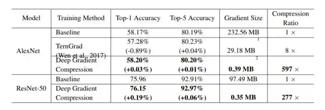 ICLR 2018 | 清华&斯坦福提出深度梯度压缩DGC,大幅降低分布式训练网络带宽需求