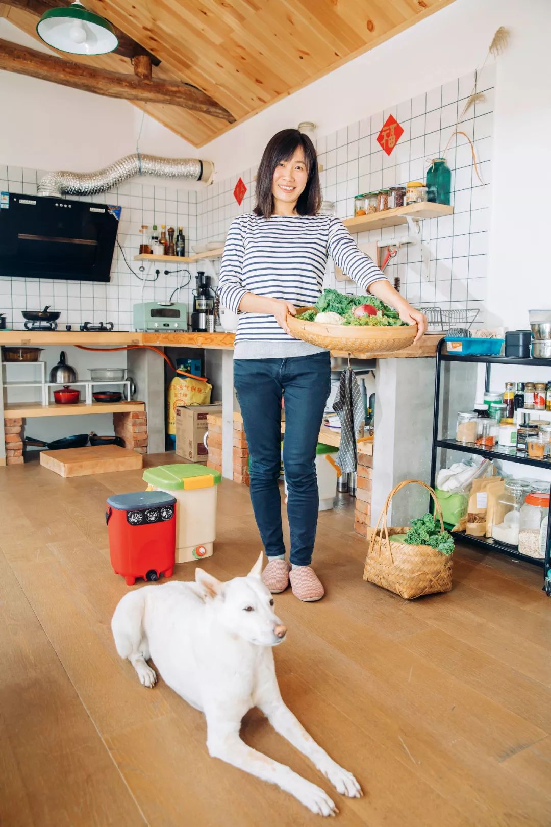 老汤带我参观了家里的四种堆肥成果。在厨房里养的蚯蚓,可以吃掉一部分家里的厨余,还有自己刚刚开始尝试酿的酵素也可以堆肥,家庭堆肥用的波卡西筒是市面上最简单、无异味的城市公寓堆肥桶。当然,还有外面院子里掩埋厨余垃圾的池子。“其实,选择一种对自己没有压力的零废弃生活,做到任何一步,都会给生活带来改变。”老汤说。