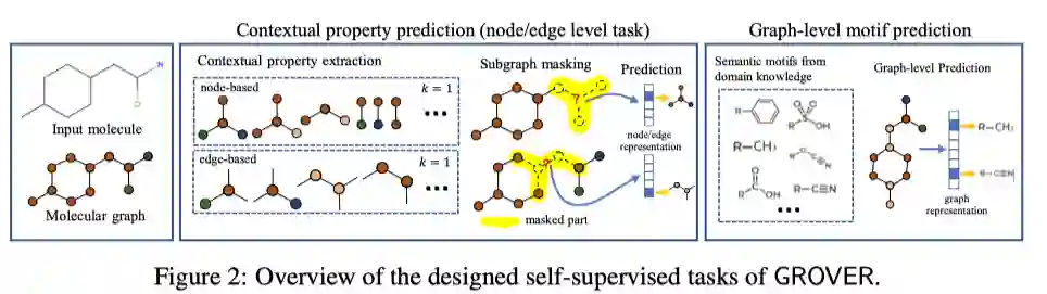 这篇文章认为不应将上下文和节点/边的信息分开考虑,由此提出Graph Representation frOm self-superVised mEssage passing tRansformer (GROVER)框架。