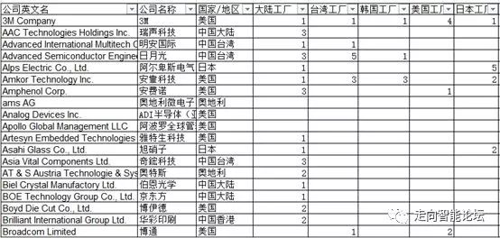 中国台湾7家:明安国际企业有限公司,谷崧,鹏鼎国际,景硕科技,和硕联合,白金科技(光学玻璃材料),至升(手机壳)。