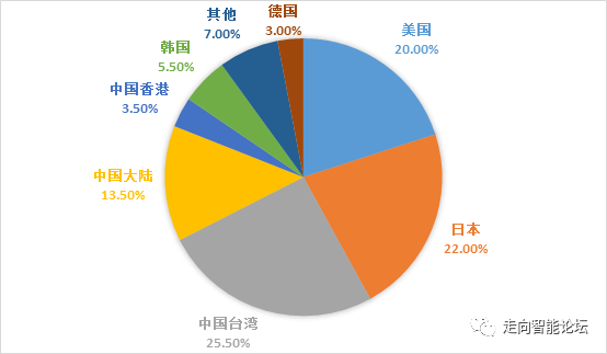 美国不仅在品牌领域有苹果,惠普,戴尔等强势品牌,而且在电子零部件产业链上依旧占据全球大约21%左右,但是美国公司的优势主要是在半导体产品方面。