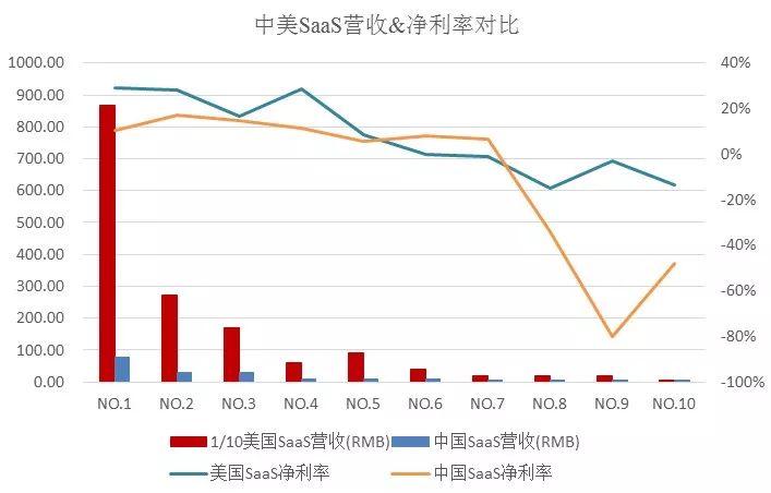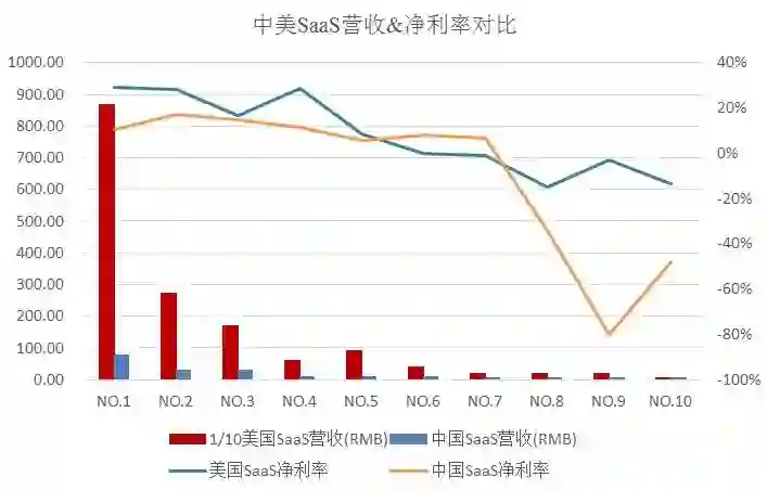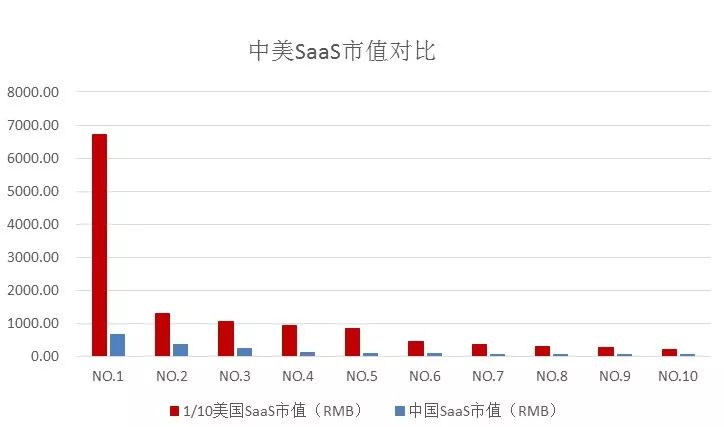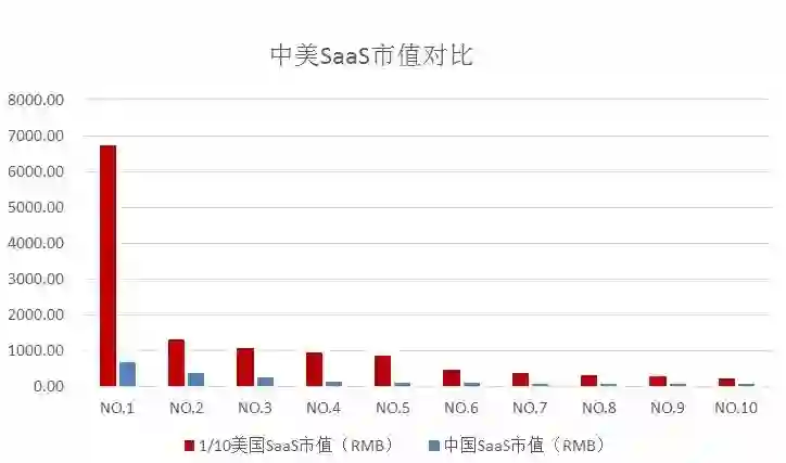而中国SaaS企业正处于探索与快速发展阶段,从体量上自然无法与美国SaaS企业匹敌。