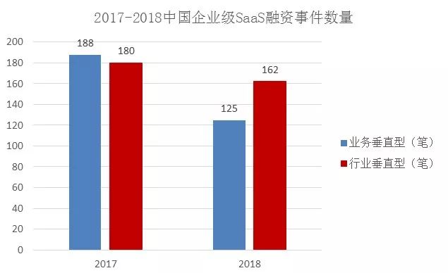 但在2018年,这个数据突然颠倒了过来,行业垂直性的SaaS企业开始得到更多的关注。