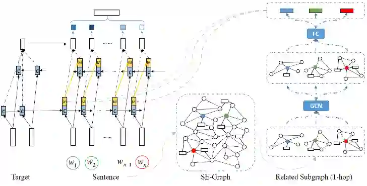 类似地,在跨目标立场分类任务上,Zhang等人[9]利用SenticNet和EmoLex构建学习带情绪关系连接的语义-情绪图谱(SE-graph),并使用图卷积神经网络(GCN)学习节点表示。给定一段文本,他们使用SE-graph为每个词学习构建一个子图并学习其表示,得到的外部特征表示送入修改后的BLSTM隐层,与当前上下文特征进行融合。
