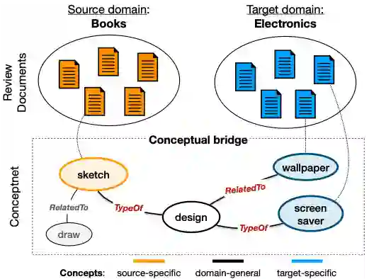 这两个工作都使用外部结构知识,扩展了输入特征空间,利用知识库中的连接将源端和目标端的评价词、评价对象等特征进行对齐,极大地丰富了情感上下文信息。