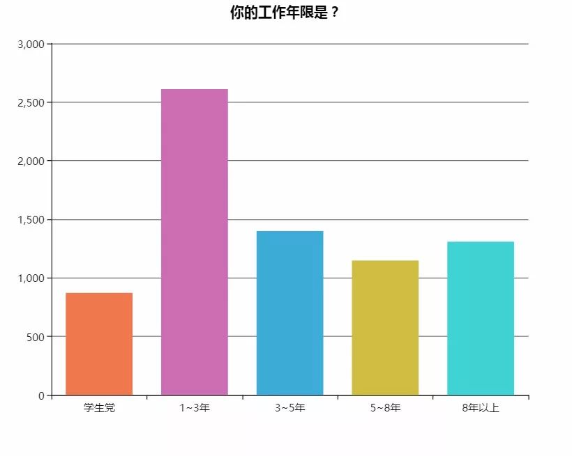 7000+ 名开发者中,1~3 年的初级开发者比重最大,学生党、3~5 年、5~8 年、8 年以上的开发者分布相差无几。从目前的情况看,国内开发者人群不管是年龄还是工作年限都相对年轻化。对比之下,由于互联网起步早,国外开发者里中级开发者群体比重相对较大。