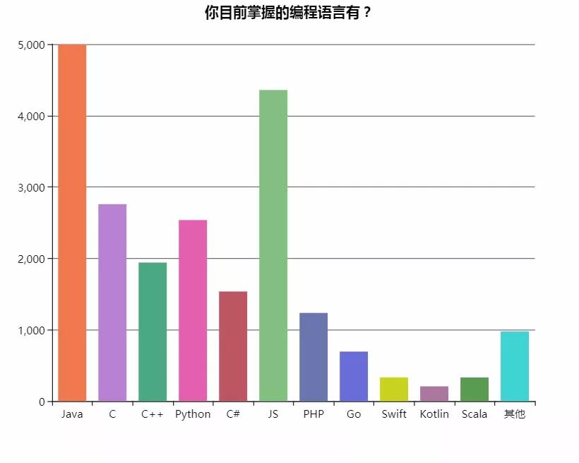 Java 不愧为各大编程语言排行榜常年霸占榜首的老牌语言,这 7000+ 名开发者中,有近 5000 名开发者都掌握了 Java 语言。除此之外,JavaScript 的掌握人数也超过了 4300 人。同样常年盘踞编程语言排行榜上前三名的 C 和 C++,也有着不小的受众群体。去年我们曾报导过 Python 语言的再度火爆,本次调查中显示的结果也确实如此,Python 的受众群体也有相当大的规模。令人意外的是,国内大火的 Go 语言,在本次调查中所占比重相对较小。