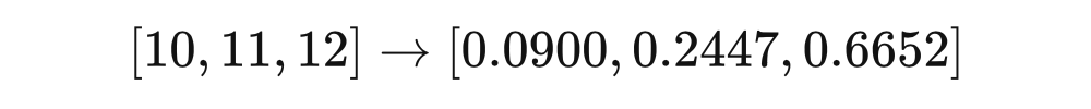 我们在使用 softmax 的时候往往会将一个差别不大的输出变成很极端的分布,用一个三分类模型的输出举例: