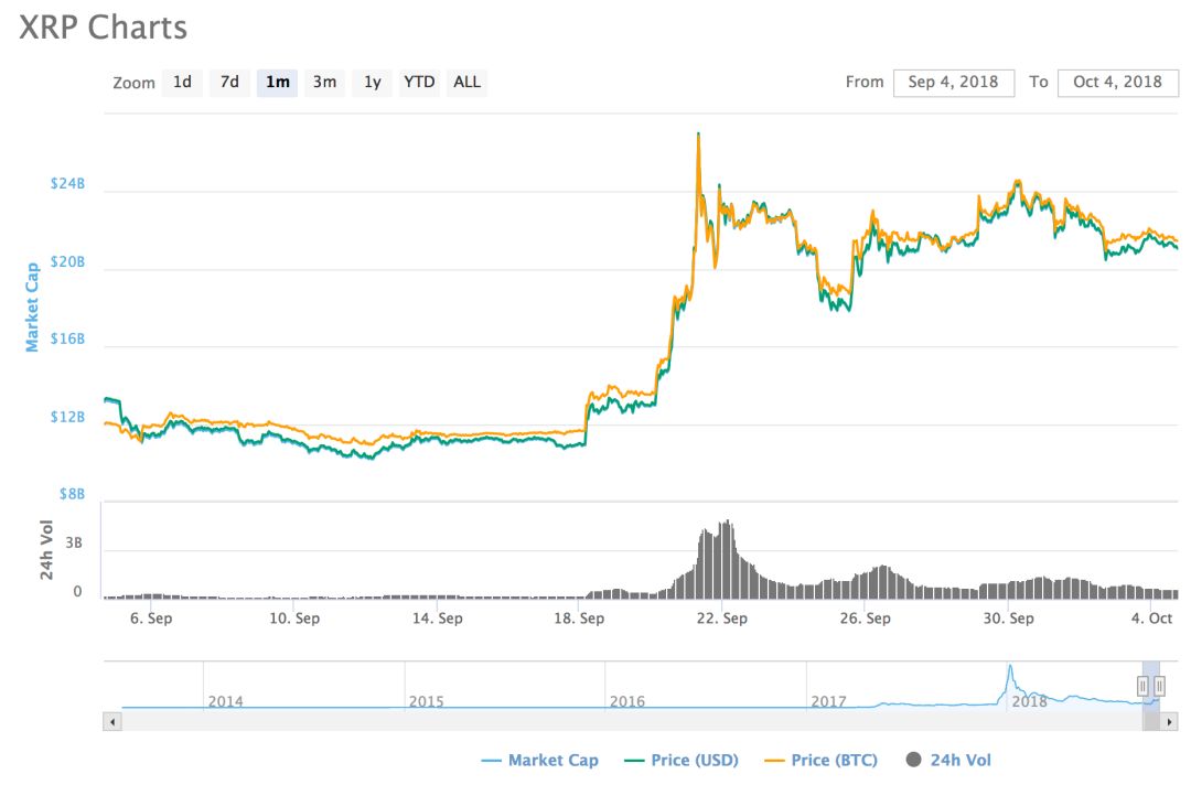 XRP 过去一个月的价格波动图