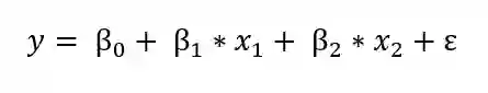 其中,y 是反应变量(也被称为因变量),β 为权重(也被称为模型参数),x 为预测变量,ε 为代表随机采样噪声的误差项或者没有被包含在模型中的变量的影响。
