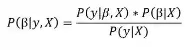 其中,P(β|y, X) 是给定输入和输出时的模型参数的后验概率分布。它等于输出的似然 P(y|β, X) 乘以给定输入的参数 β 的先验概率 P(β|X) 并且除以归一化常数。这是贝叶斯定理的一个简单表达形式,是支撑贝叶斯推断的基础。
