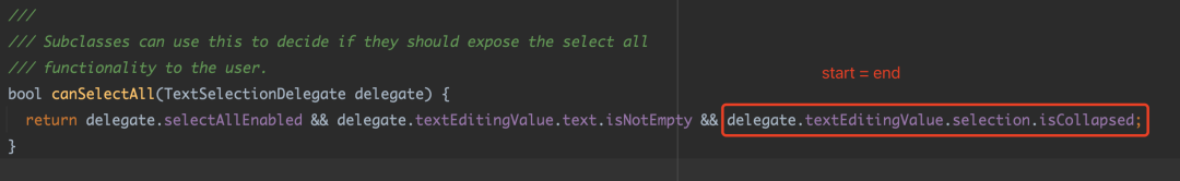 所以如果您觉得这个判断有问题,完全可以自己 override 一个自定义的 TextSelectionControls,比如在 canSelectAll 直接 return true。