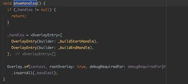 而在 SelectionArea 里,不管是 Handle 还是 Toolbar,都是通过新增 Overlay 来实现样式,这部分的逻辑主要在 SelectionOverlay 对象: