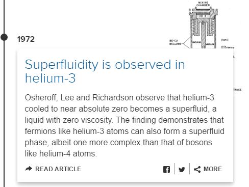 1972 年,He-3 超流被发现,三人因此获得 1996 年诺贝尔奖。