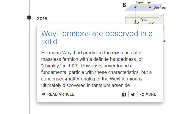 2015 年,中科院物理所团队在固体中发现外尔费米子。
