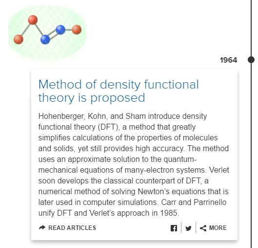 1964 年,Hohenberger, Kohn 和 Sham 提出了密度泛函理论,是如今非常重要的计算模拟方法,Kohn 因此获得 1998 年诺贝尔化学奖。