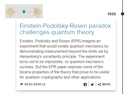 1935 年,爱因斯坦、波多尔斯基和罗森提出一个佯谬来论证量子力学的不完备性,即著名的 EPR 佯谬,但实验中证实了量子力学的正确性,并导致了量子信息学的诞生。
