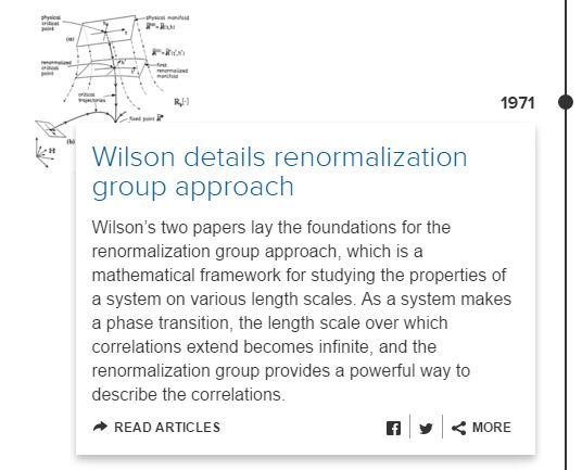 1971 年威尔逊提出重整化群理论,如今已经是理论物理中重要的理论工具,并因而获得了 1982 年的诺贝尔物理奖。