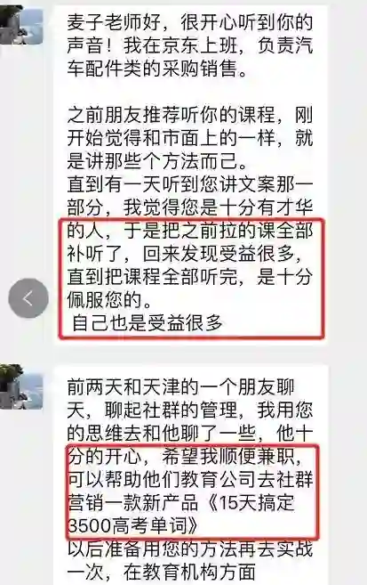 如果大家想拥有大批拥趸,花钱不用再 看别人的脸色,不用再忍受突如其来的委屈。那么你就可以加入麦子老师的社群,抓住这次风口!